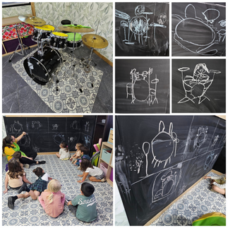 Los grupos de Iniciación están descubriendo las notas musicales y las partes de la batería. Además de tocarla, la dibujan y mediante juegos aprenden los nombres y el sonido de cada elemento.
